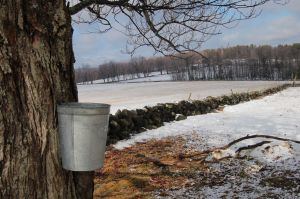 The iconic Vermont maple sugaring image is of a farmer collecting sap from wooden buckets in a snow-covered grove graces postcards, maple syrup containers, state marketing materials and even the back of the Vermont state quarter.
