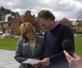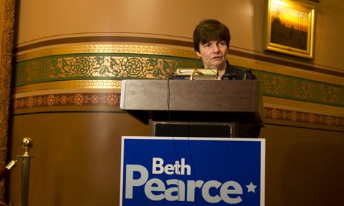Pearce also criticized Wilton for “flip-flopping” on health care reform. Wilton made a number of public appearances last year in which she made an effort to sow doubt about the financial viability of a single-payer system. When Wilton became the GOP candidate for treasurer, she stopped talking about health care and has been reluctant to take a stance on the issue.