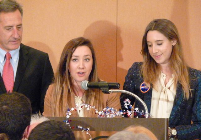 Jeb Spaulding, Pearce’s former boss, and the now-Secretary of the Agency of Administration, introduced the treasurer. “We’re not here to celebrate the super PAC woman, we’re here to celebrate the super woman who beat the super PAC,” Spaulding declared.