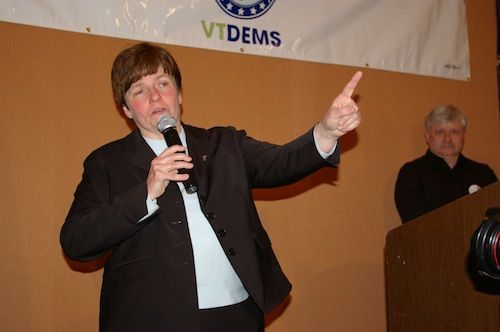 The Democrats were pleased by rousing speeches from Sanders, Welch and Shumlin, but the din from the crowd, which swelled as the night wore on and partygoers got a little tipsy, threatened to overwhelm the speakers. But when Beth Pearce took the stage, the audience went wild with applause.