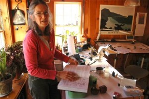 In the last four years, she has branched out to do copper etchings, which she hand colors, providing a new creative outlet and a chance to make her art more publicly accessible. She works on them at the Whetstone Studio for the Arts in downtown Brattleboro.