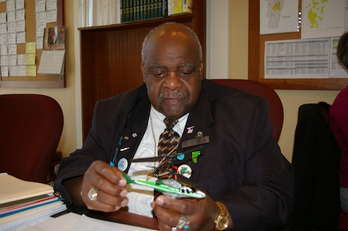 Rep. Kevin Christie, D-Hartford, holds a remote-controlled helicopter, similar to smaller unmanned drones that law enforcement agencies across the country are seeking to acquire. Photo by Andrew Stein.