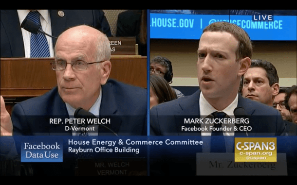 Welch made his comments during Zuckerbergโs appearance before the House Energy and Commerce Committee. It was the Facebook CEOโs second day of public meetings on Capitol Hill this week.